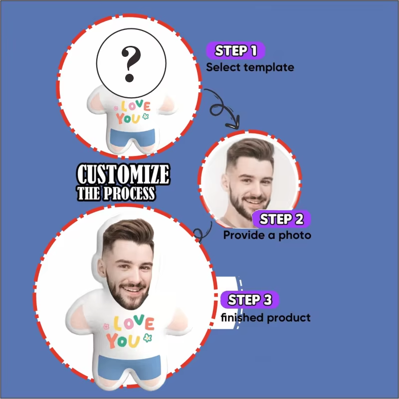 We take your favorite photo and print it on a human-shaped pillow that has "I Love You" written right on its belly.